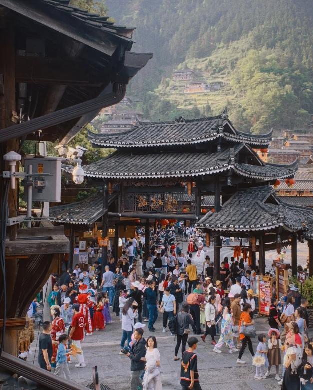 走在風雨橋上,聆聽潺潺流水聲;登上觀景臺,俯瞰西江千戶苗寨全景,看雲霧繚繞的遠山與壯麗的梯田風光;漫步村巷裏,在氤氳煙火氣中感受苗家人的淳樸和熱情……