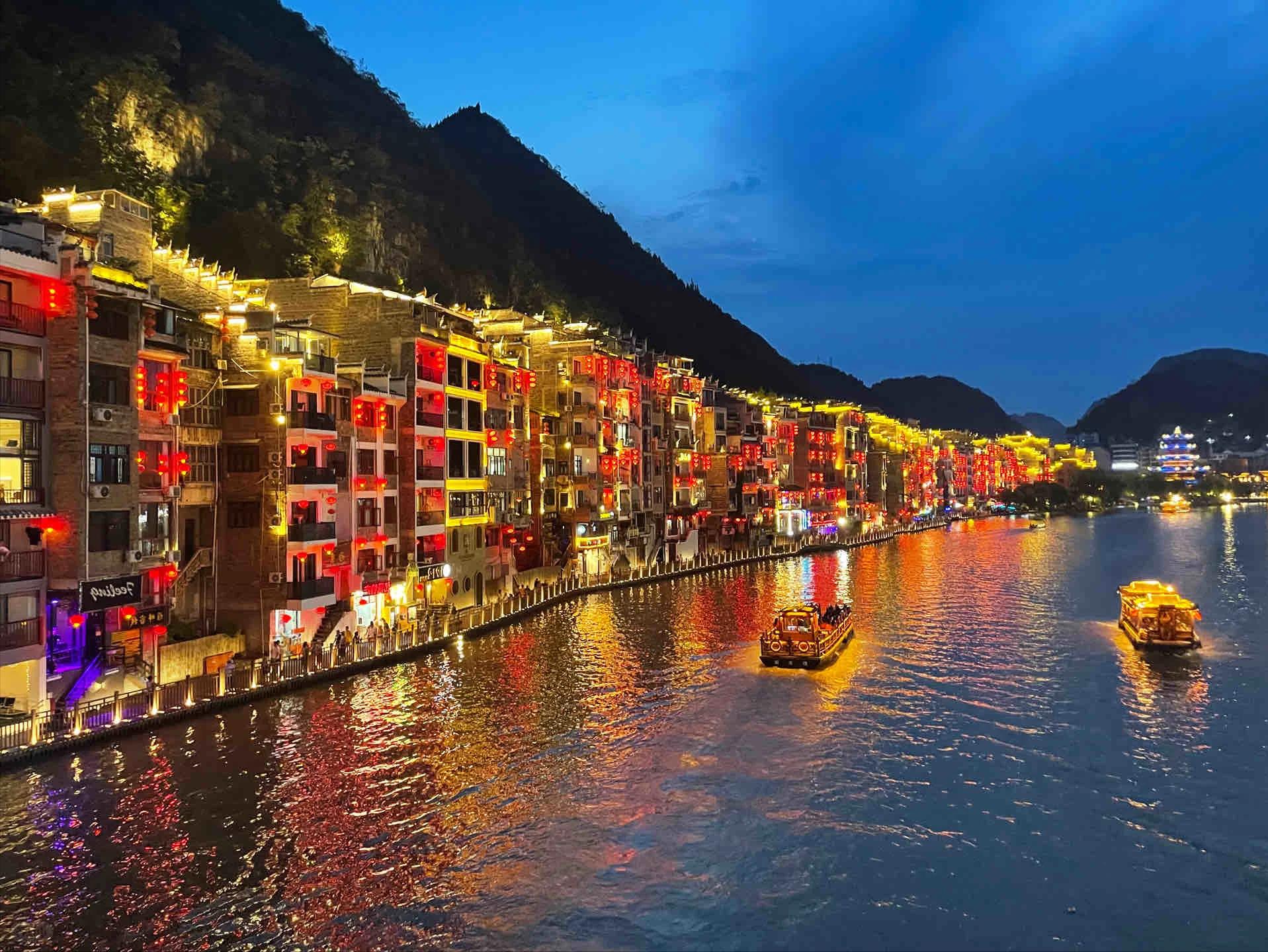 古鎮的夜景也非常美麗。許多古建築在夜晚會亮燈,在河邊漫步或者乘坐遊船欣賞夜景都是不錯的選擇。