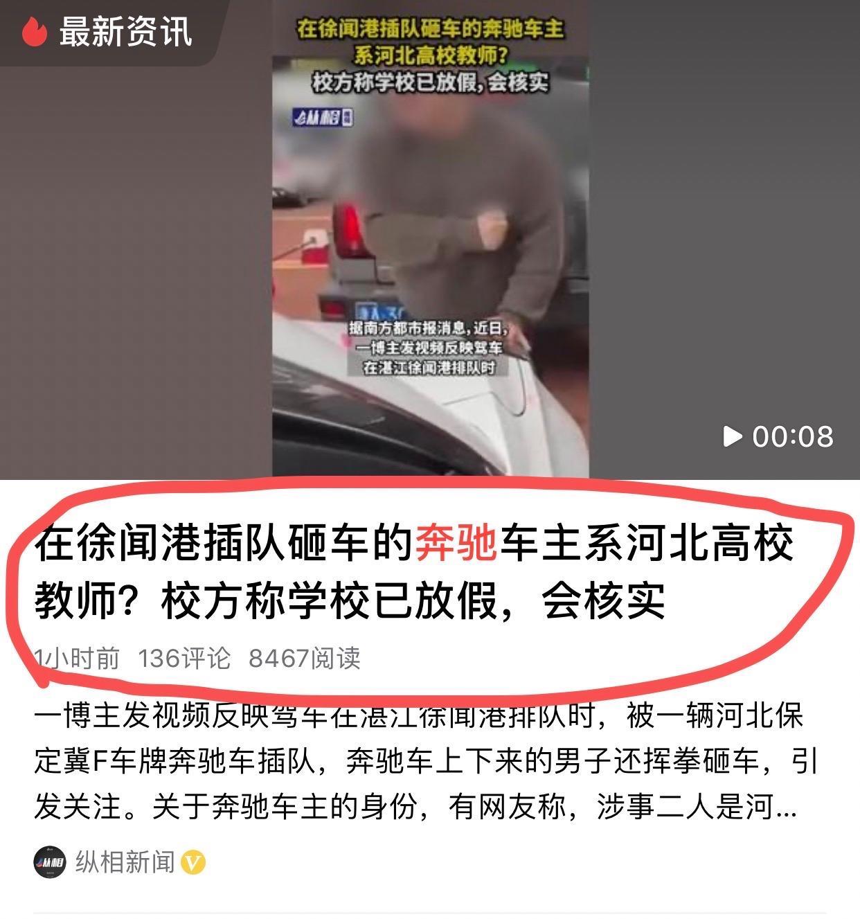 1、現在奔馳車主反轉不反轉不是重點,現在生活中的事情你跟任何人糾紛,如果你理由再贏,出手傷人最終還是你要負責,這河北保定男子大家不是關注誰插隊,是關注他那副醜惡的嘴臉、罵人,砸車。