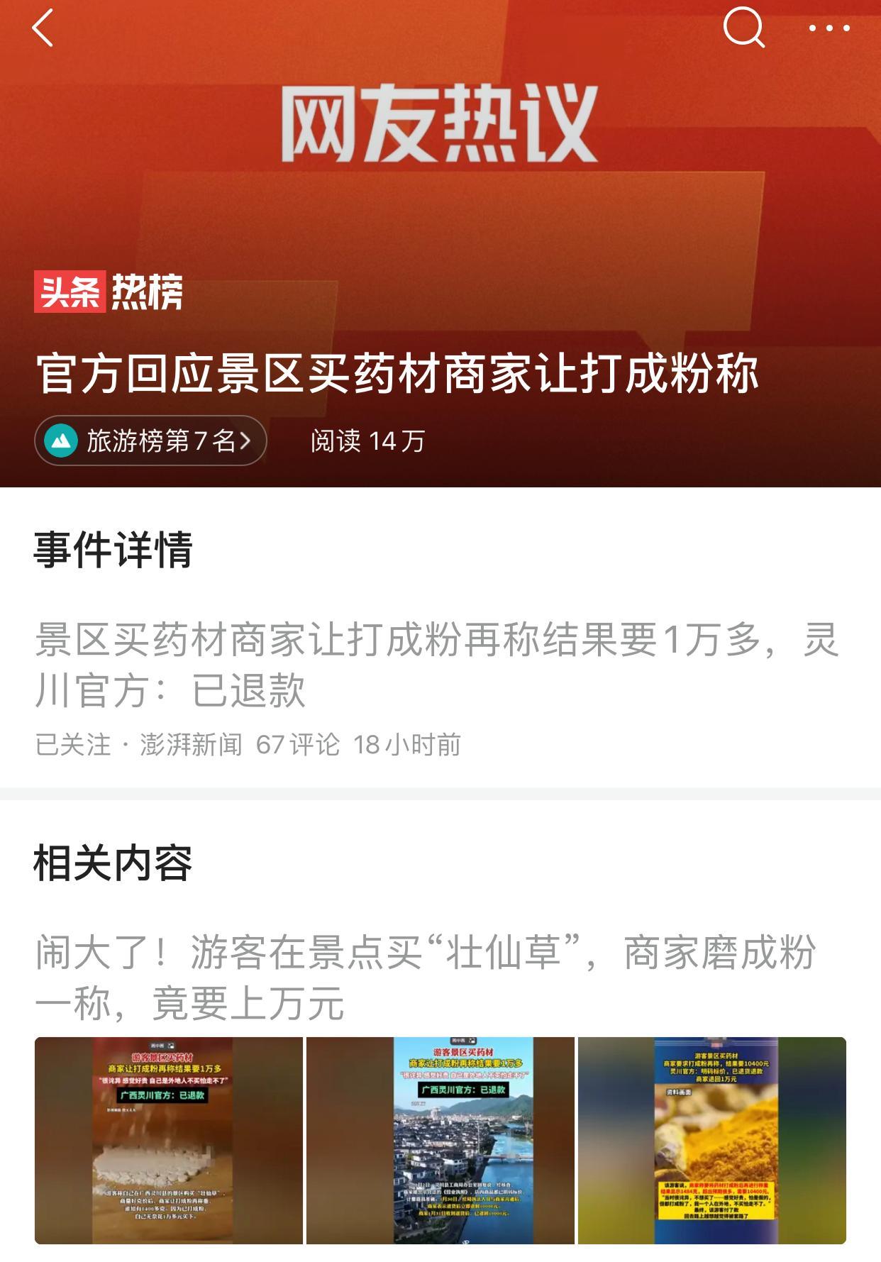 你對此怎麼看?你在旅遊時有遇到被宰客事情嗎?歡迎留言討論,關注我,每天分享不同的旅行世界。 #景區買藥材商家打成粉稱要1萬多#