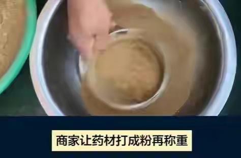 於是這位遊客跟商家討價還價之後,雙方商議價格從15元每克,還價到了7元每克。該遊客說,商家稱要將藥材打成粉後再進行稱重,結果顯示1484克,超出預期很多,需要10400元,又不敢反駁,只能硬撐着付款買下。