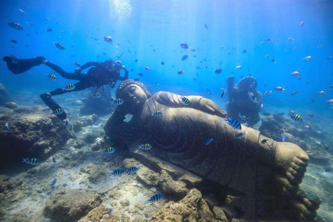 分界洲島,中國首家海島型5A景區,這裏也是著名的潛水勝地,在水下,除了能看到美麗的珊瑚礁和熱帶魚羣外,還可以看到古代沉船和佛像。門票+船票122元。