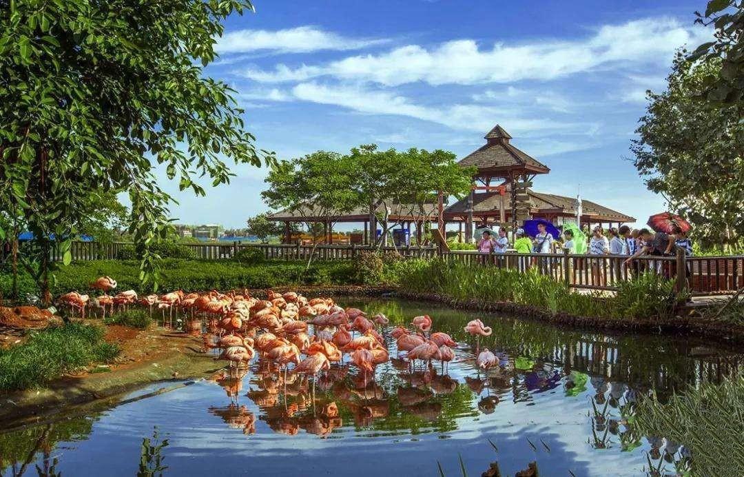 富力紅樹灣溼地公園,這裏空氣清新,風景宜人,被人稱爲“海口的後花園”,在這裏能看到成羣結隊的火烈鳥。