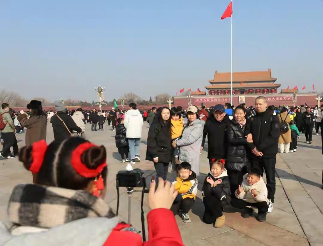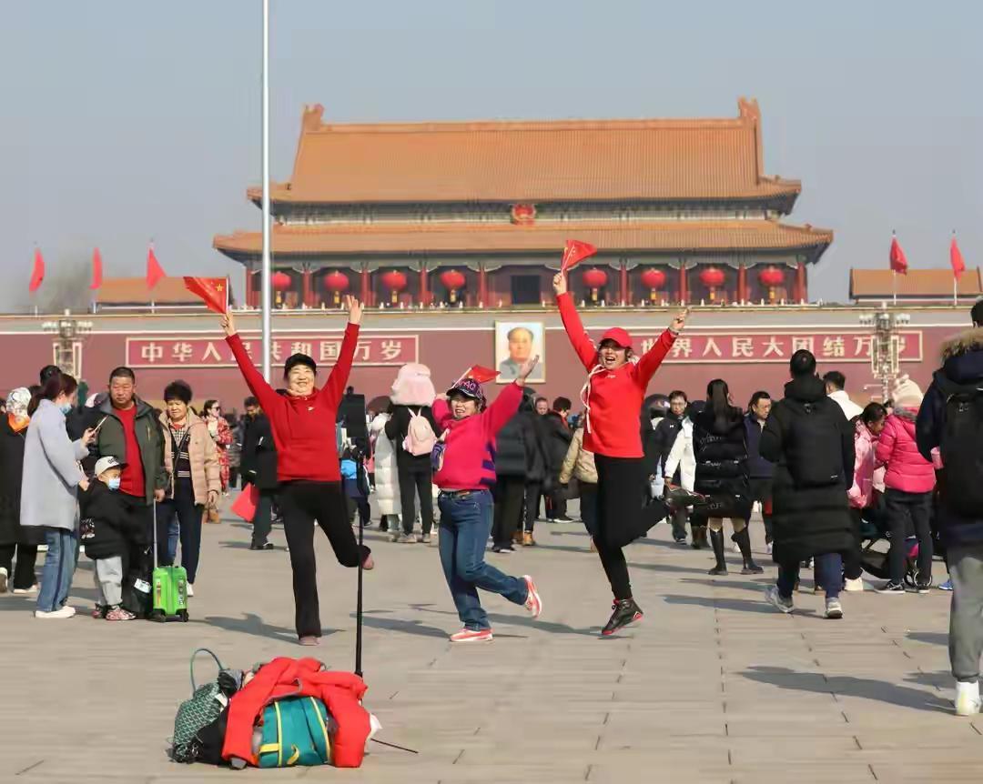 7、北京天安門,看升旗儀式,一年四季都是人山人海遊客,爲了能找到好位置。大部分遊客凌晨四點就開始排隊,大年初三,天安廣場遊客衆多,一片歡樂喜慶氛圍迎接新年,很多遊客在拍照打卡。