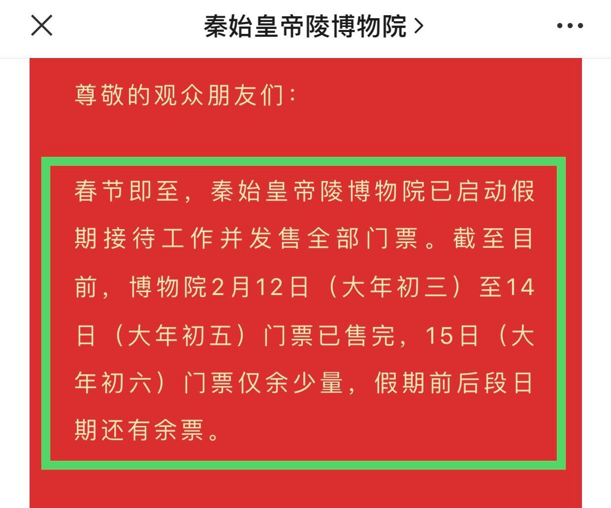 2、西安兵馬俑:西安旅遊名片,大年初一就發佈公告,門票預售到了大年初六以前,沒預約到門票遊客千萬別來了,否則白跑一趟。