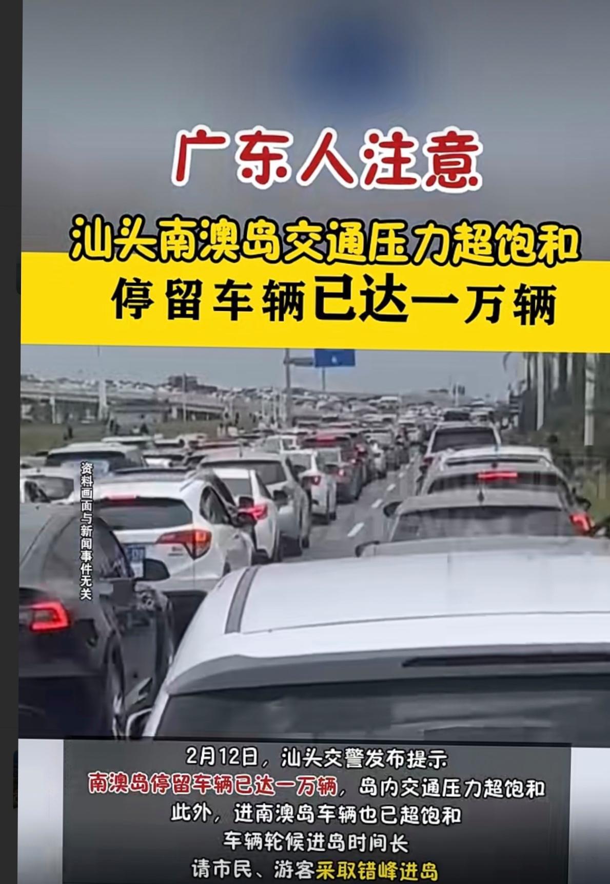 9、廣州汕頭南澳島,汕頭官媒報道,汕頭核心小公園三天接待57萬多遊客,還調侃說來汕頭旅遊給你一個賈玲式瘦身,汕頭南澳島2月12日已經有一萬輛車停留,交通壓力超飽和狀態,請遊客錯峯停車。