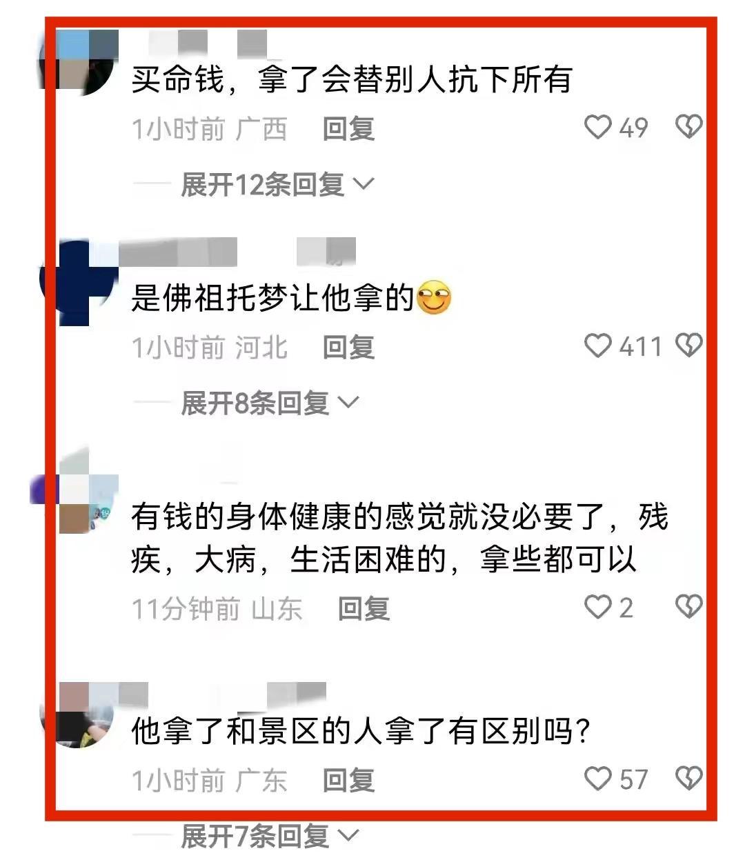 2024年2月11日,大年初二,三亞南山景區南海觀音下祈福的遊客人山人海,很多人就把功德錢隨便塞在觀音腳下,隨處可見功德錢,然而令大衆尷尬一幕出現了,一位身材高大中年男子當着大衆的面拿走一些功德錢,讓很多現場遊客不理解,有人拍成視頻發到網上,引發輿論熱議。