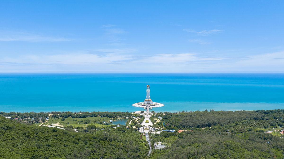 三亞南海觀音,位於距三亞市西南40公里的南山文化旅遊區,三亞南山海上觀音高108米,一體化三尊”,分爲東、西、北三面像,觀音聖像手持經篋,象徵智慧;東面像手持蓮花,象徵和平;西面像手持佛珠,象徵慈悲,是目前全國最大海上觀音造像。