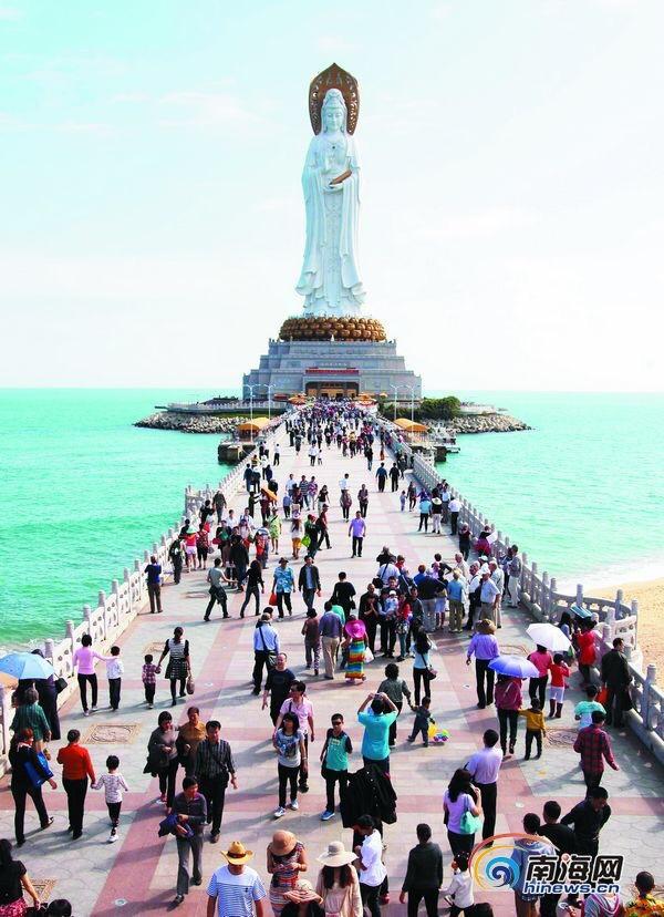 三亞南海觀音建於1999年動工,耗時6年建成,耗資8億元,2005年舉行開光儀式,從此香火旺盛,每年迎接五湖四海的遊客上百萬人次,現爲國家5A級景區。