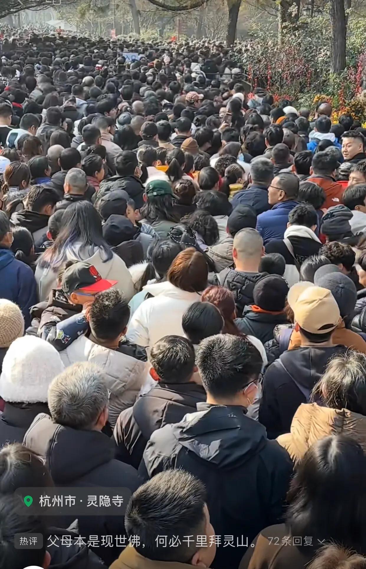 1、杭州靈隱寺,全國遊客最多寺廟,杭州這個春節假期進入高峯期,兩個旅遊景點最火爆,一個是杭州西湖,第二個就是靈隱寺,靈隱寺是杭州最早的名剎,也是中國佛教禪宗十大古剎之一,創建於東晉咸和元年(公元326年),如今有一千多年曆史,自從2023年90後、00後年輕人選擇打卡寺廟遊之後,靈隱寺成爲網紅打卡地,2024年春節大年初一開始靈隱寺半夜遊客還在排隊,春節假期進入第五天,靈隱寺依然被遊客被圍得水泄不通,走也不能走、動也不能動,有人喊後悔了,只想回家,連保安都在勸遊客回家。