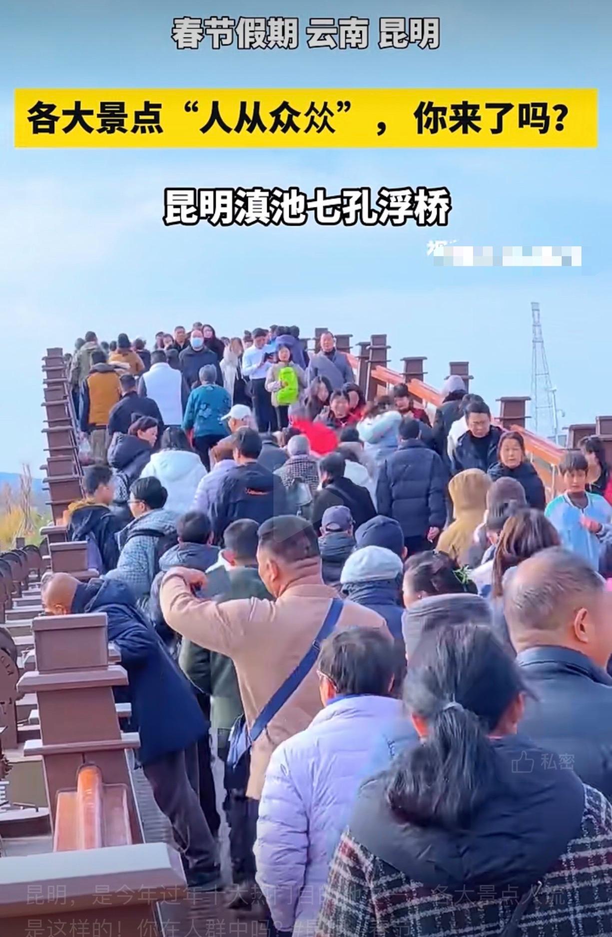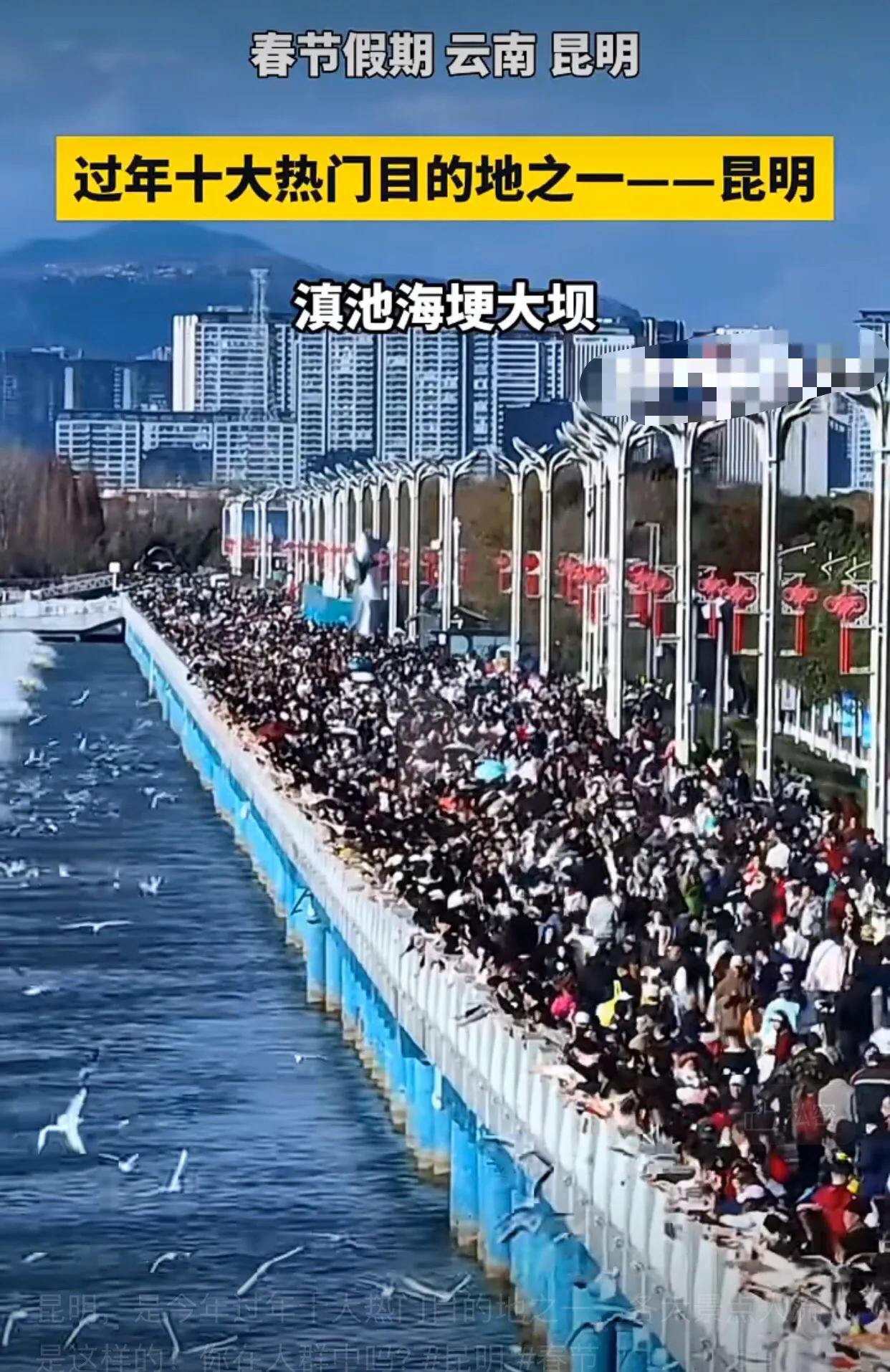 9、昆明滇池海埂大壩,雲南旅遊第一站當然是昆明海埂大壩喂海鷗了,昆明旅遊春節暴漲131%,海埂大壩喂海鷗遊客人山人海,單日觀鷗人數達到6.5萬人次,當地提醒錯峯觀鷗,昆明西山龍門遊客出現擁擠,大觀園更是人滿爲患,滇池七孔浮橋變成了西湖斷橋殘雪一樣擠滿了遊客。