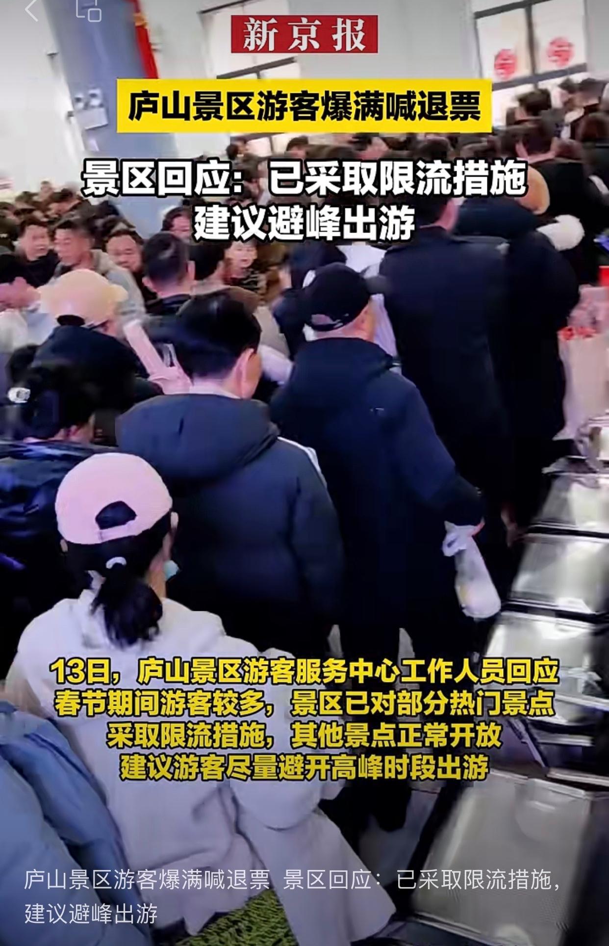 11、江西廬山,因爲唐代大詩人李白一首詩“飛流直下三千尺 ,疑是銀河落九天”。到今天成了一個網紅打卡地,廬山除了瀑布,當然還有近代歷史,廬山也是三山五嶽之一,風景一絕,大年初四,廬山景區遊客量達到了疫情過後前所未有高峯,遊客排隊兩小時沒有坐上擺渡車,導致遊客集體喊退票,景區工作人員說可能他們預備還是不足,會給相關部門進行反饋,注意後期接待遊客預備工作,景區回應建議遊客早晨提前一點或者下午晚一點錯峯出遊,別在中午全部擠在一起。