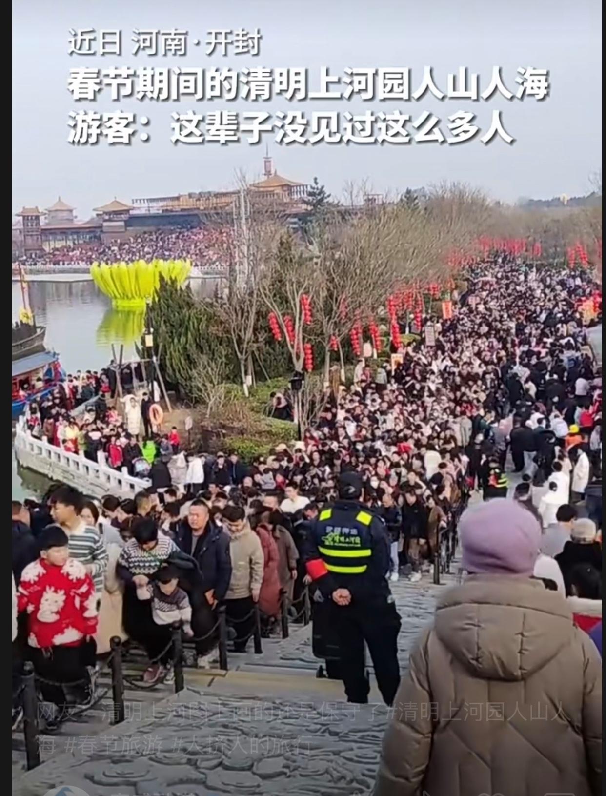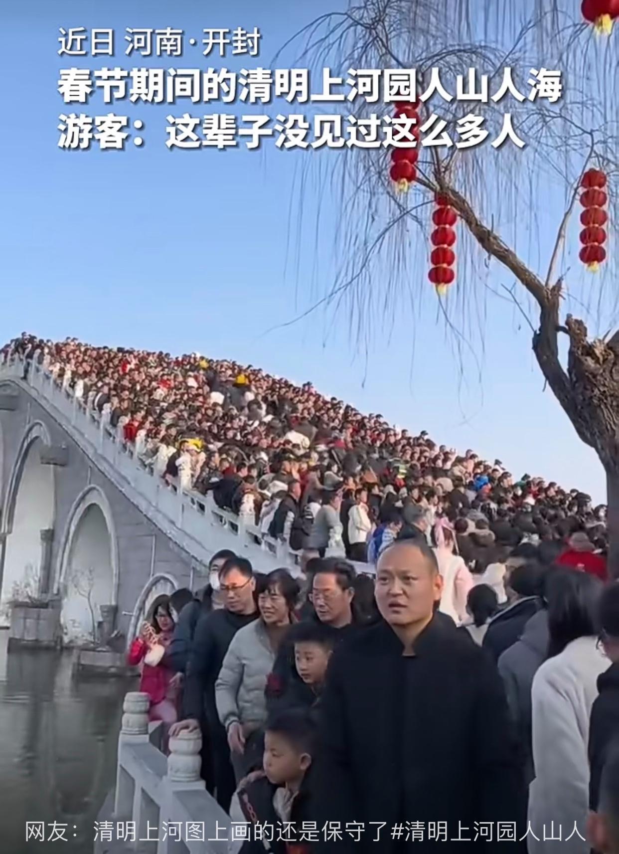 4、開封清明上河園,按照北宋著名畫家張擇端的《清明上河圖》複製出來的一個北宋開封,再現大宋的繁華,從開園到現在一直就是受遊客追捧的景區,其實清明上河園的建築都是仿古建築,遊客不在乎這些,但是裏面文化表演節目非常精彩,這個春節清明上河園景區全是遊客,網友質疑張擇端畫清明上河圖人物畫少了,實際北宋盛況可能就是現在遊客現狀,清明上河園也被網友評爲春節假期全國遊客最多的頂流景區。
