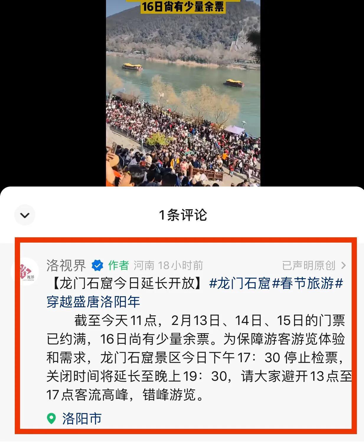 5、洛陽龍門石窟,洛陽作爲一個千年古都,歷史文化,美食美景,成爲河南排名榜首的旅遊城市,到洛陽旅遊必去景點就是龍門石窟,中國四大石窟之一,國家5A級景區,世界文化遺產,這個春節龍門石窟遊客有多誇張嗎?現場遊客說只看到人頭湧動,看不到空地,景區提醒遊客錯峯出遊,主要避開13點至17點高峯時段。