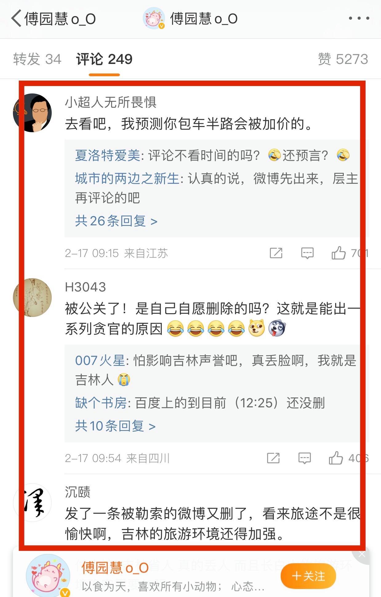 傅園慧加上奧運會體育運動員名人效應,微博729萬粉絲大v,如果吉林文旅和長白山地方交通不作出一個很好解決方案,將會對當地旅遊口碑帶來很大負面影響,所以這場旅遊宰客糾紛網絡輿情處理得很迅速、很及時。這場輿情解決速度前後只用了2個小時,如今傅園慧投訴那條微博已經刪除。