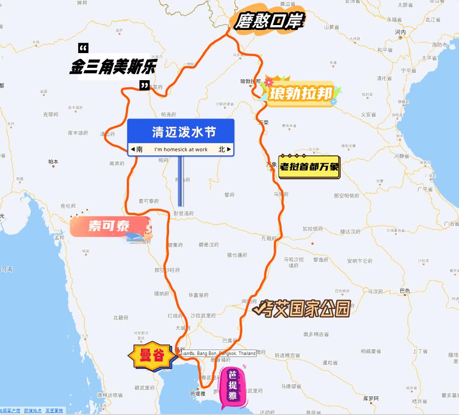✔:環駕老撾泰國全程不走回頭路,不趕路