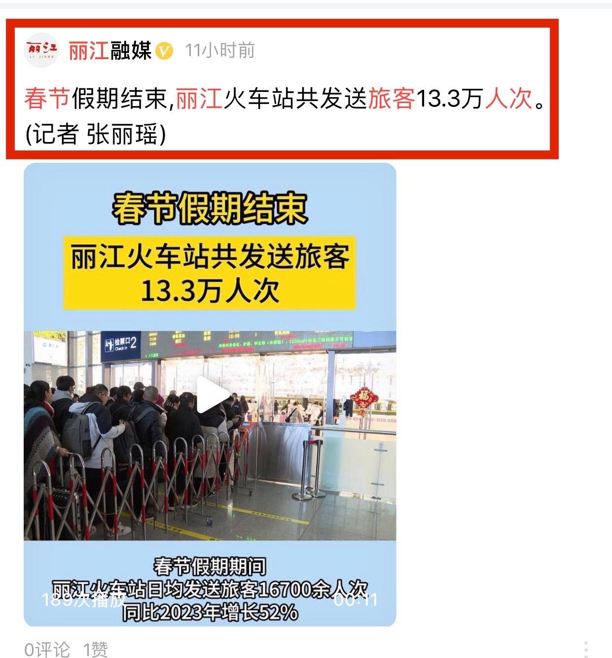 這個春節假期已經結束,作爲熱門旅遊城市麗江古城,旅遊熱潮依然不減,據《麗江融媒體》報道,麗江春節八天假期火車站一共發送旅客13.3萬人次,麗江古城每天隨時8萬遊客在線,玉龍雪山每天接待3.2萬名遊客。