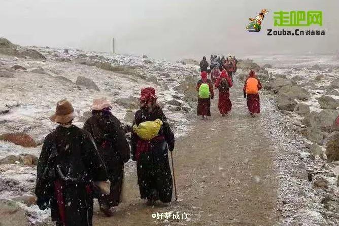於是我的思緒如雪花飄逸,這次風雪轉山路一定是佛祖對我是否誠心誠意轉山的考驗、對我直面困難時意志是否堅定的考驗!想到這,雪花打在臉上好像沒感到特別冷,甚至一度把拉鍊打開,讓雪打在我的臉上還感到特別爽,奮勇孤行。