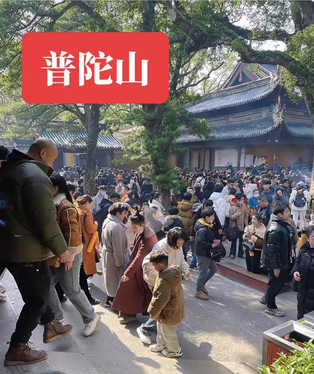 春節假期普陀山景區進入人流高峯,除夕第一天海上游客達到4萬多人次,大年初一單日達到9萬多人次,據《潮新聞》報道,普陀山景區春節其他時間大部分每天在10萬遊客這樣,春節來普陀山祈福燒香遊客更是擠得水泄不通,大量的遊客到來,普陀山住宿也一房難求,有人睡廁所了。