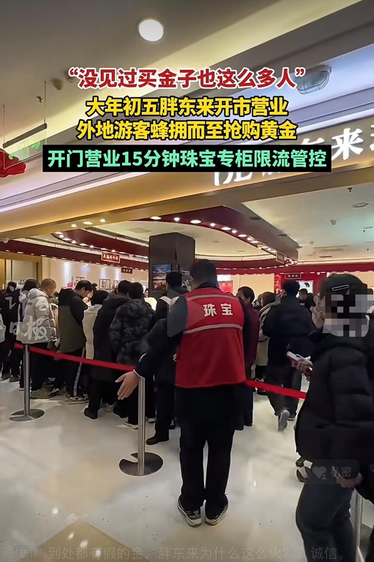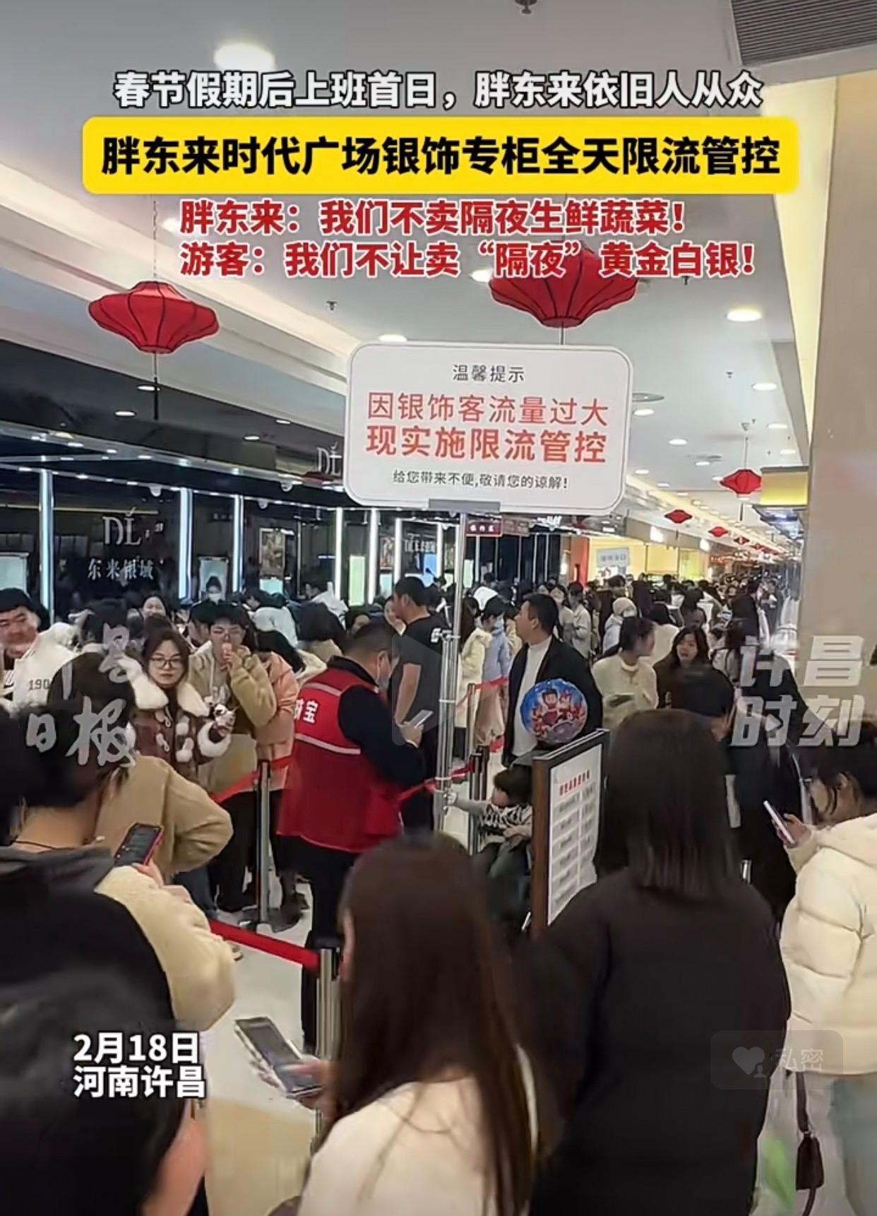 胖東來春節假期一共營業四天,胖東來最受歡迎的是黃金櫃臺,從23年底金價大降價,各地金項鍊、首飾更是搶購一空,胖東來春節遊客根本不問價,直接打包,直到遊客把櫃檯買空。