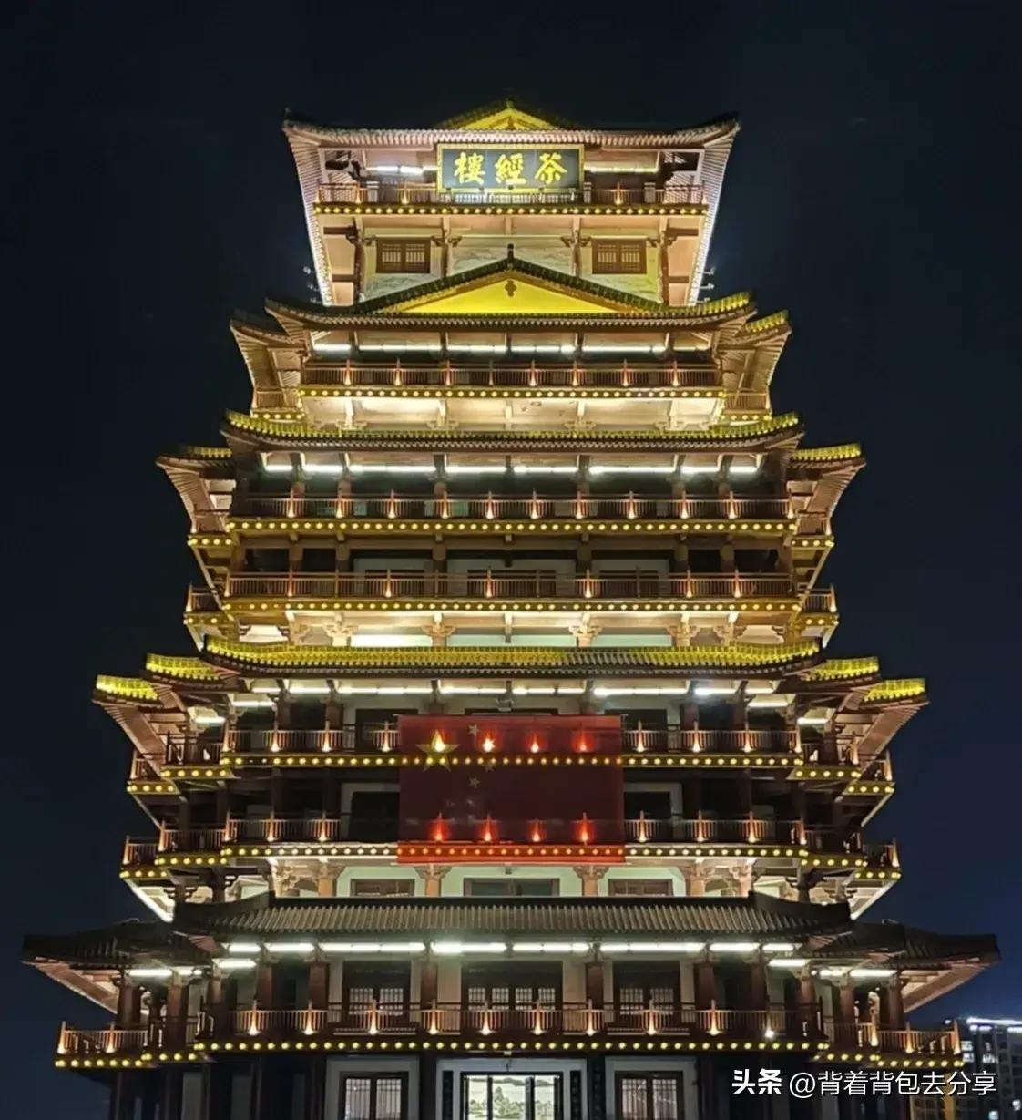 陸羽故園,位於湖北省天門市文學泉道與西寺路交叉口西,是一座以茶文化爲主題,紀念茶聖陸羽而建的開放式綜合公園,也是世界最大的茶文化主題公園,這裏有主要建築陸羽紀念館-茶經樓-般若閣,以及造型獨特的亭臺水榭,而茶經樓是陸羽故園的標誌性建築,九層爲唐代樓塔式建築風格,是整個陸羽故園必打卡的地方