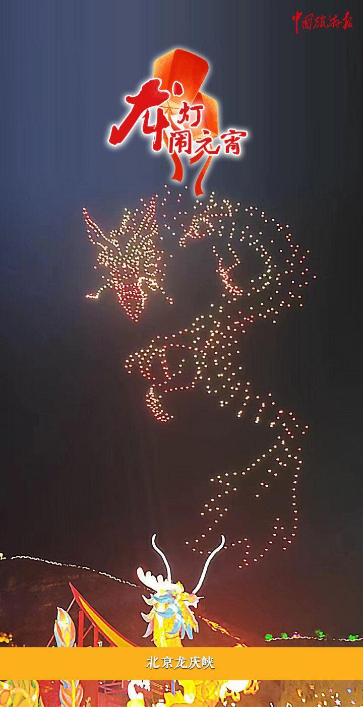 第38屆龍慶峽冰燈冰雪嘉年華的無人機表演秀以“盛世龍騰”爲主題,講述了小鯉魚“泡泡”越過龍門後化身爲龍的美好故事。