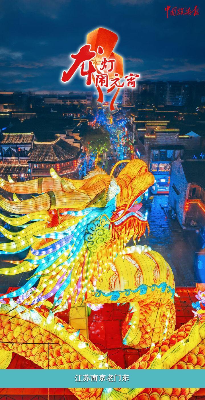 老門東景區也是第38屆中國·秦淮燈會展區之一,景區城牆下的“龍騰盛世”大型燈組高16米、寬22米,氣勢磅礴。
