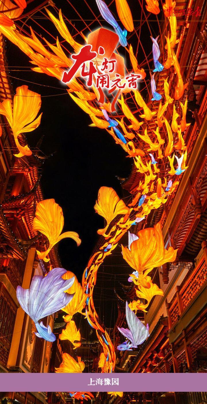 2024年豫園燈會的“一夜魚龍舞”燈組,將繽紛多彩的魚羣匯聚成游龍迴旋之姿,遊走在飛檐斗拱之間,美輪美奐。