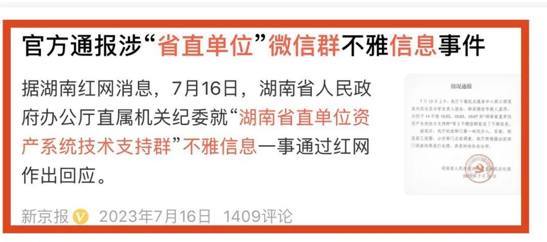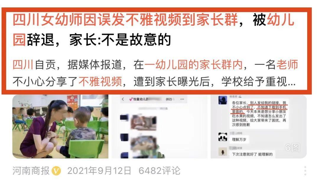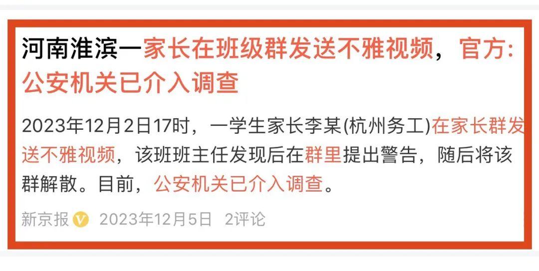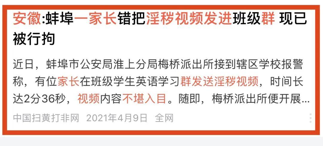 【6】對於徐校長微信羣裏發送不雅視頻,回顧一下近幾年家長羣流出不雅視頻:1、2023年12月2日17時,一學生家長李某(杭州務工)在家長羣發送不雅視頻,該班班主任發現後在羣裏提出警告,隨後將該羣解散。2、2021年4月9日,安徽 蚌埠一位家長在班級學生英語學習羣發送淫穢視頻,時間長達2分36秒,視頻內容不堪入目,最後家長被刑拘。3、2021年9月12日,四川自貢, 在一幼兒園的家長羣內,一名老師不小心分享了不雅視頻,遭到家長曝光後,女幼師 被幼兒園辭。4、2023年7月16日,湖南省人民政府辦公廳直屬機關紀委就“湖南省直單位資產系統技術支持羣”不雅信息一事通過紅網作出回應。