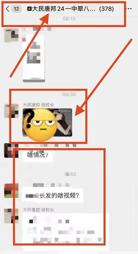 【2】在教育開放的今天,不論是官方學校還是民間培訓機構,都是爲了教書育人,培養人才,推動社會進步發展,很多培訓機構還做得不錯,2024年2月25日四川宜賓,上午9點35分,一個微信羣名爲(大民唐邦24一中翠八)教育羣,羣裏378位羣友,裏面一個羣友名字叫(大民唐邦—徐校長),在羣裏發了一段1分30秒不雅視頻,這位徐校長視頻一發出來,羣友立馬就問(啥情況),還有一位羣友接着問(徐校長髮的啥視頻),從視頻馬賽克上半身看出,是一個非常驚訝三觀露骨的黃色視頻,有人截圖發到網上就火了。