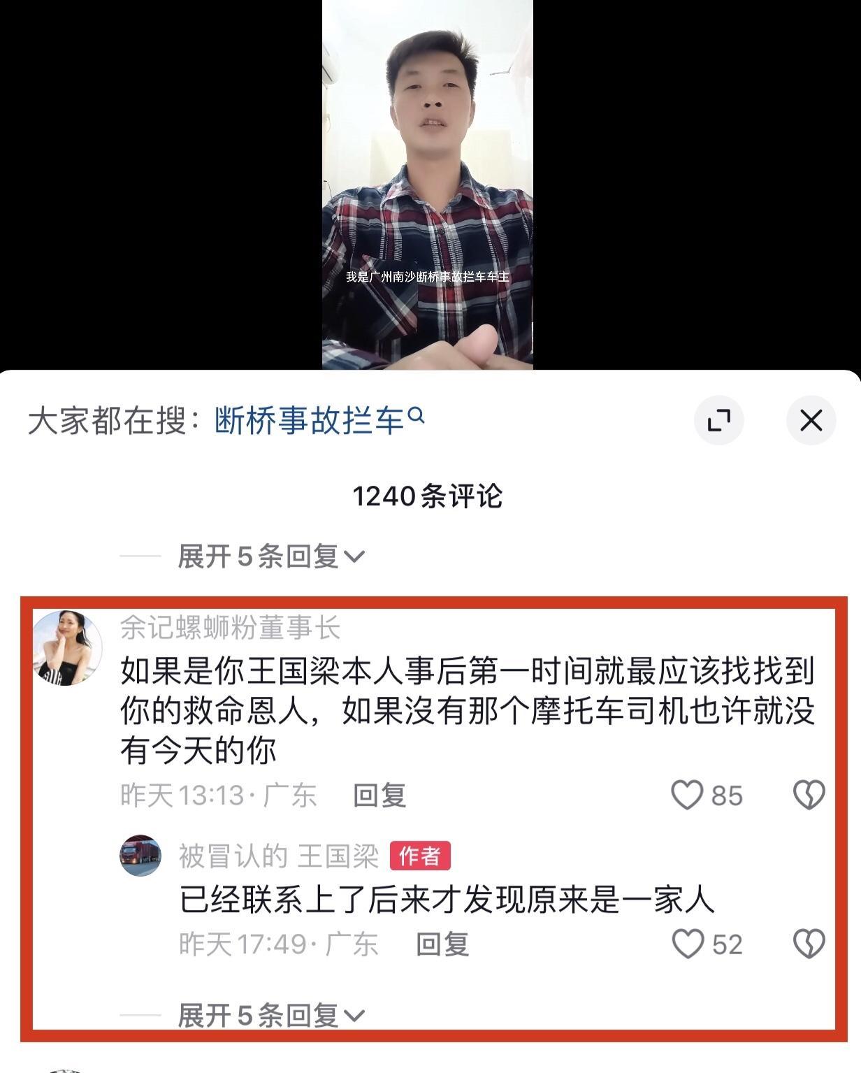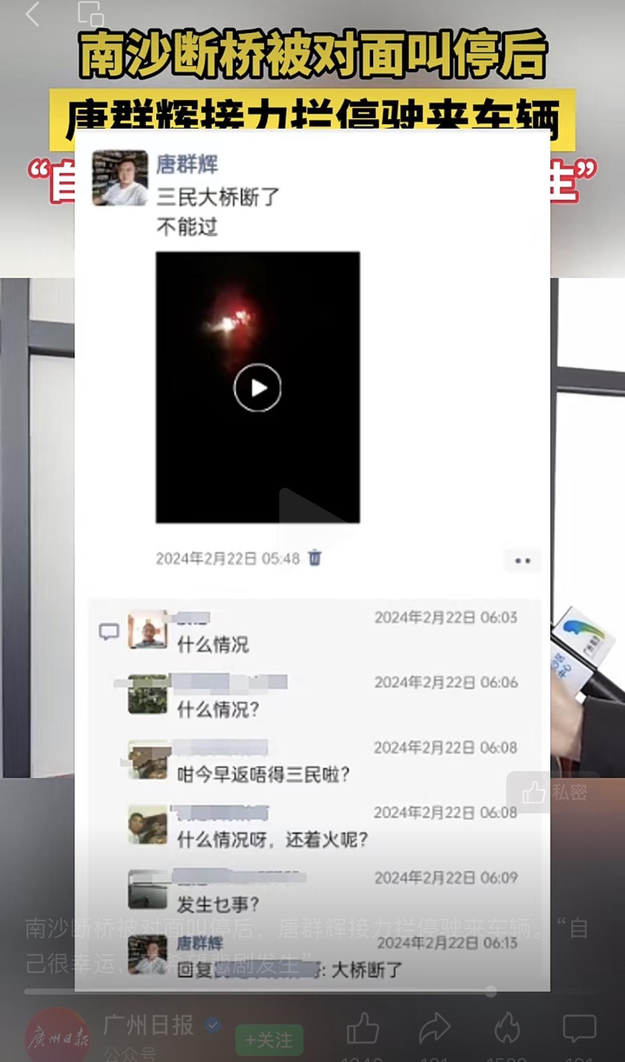 #2024春節返鄉大作戰##廣州瀝心沙大橋斷裂##瀝心沙大橋5位攔車英雄均已找到##廣州瀝心沙大橋“雙閃哥”找到了#
