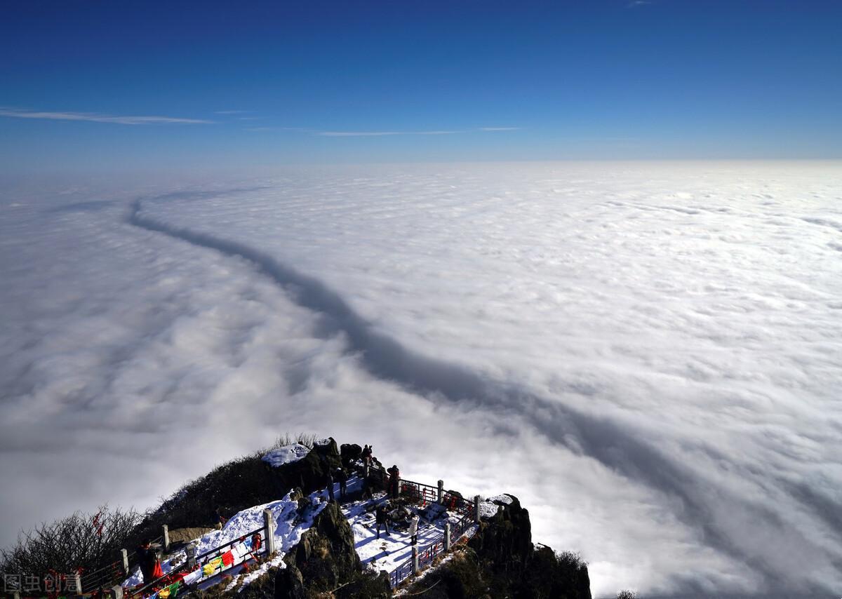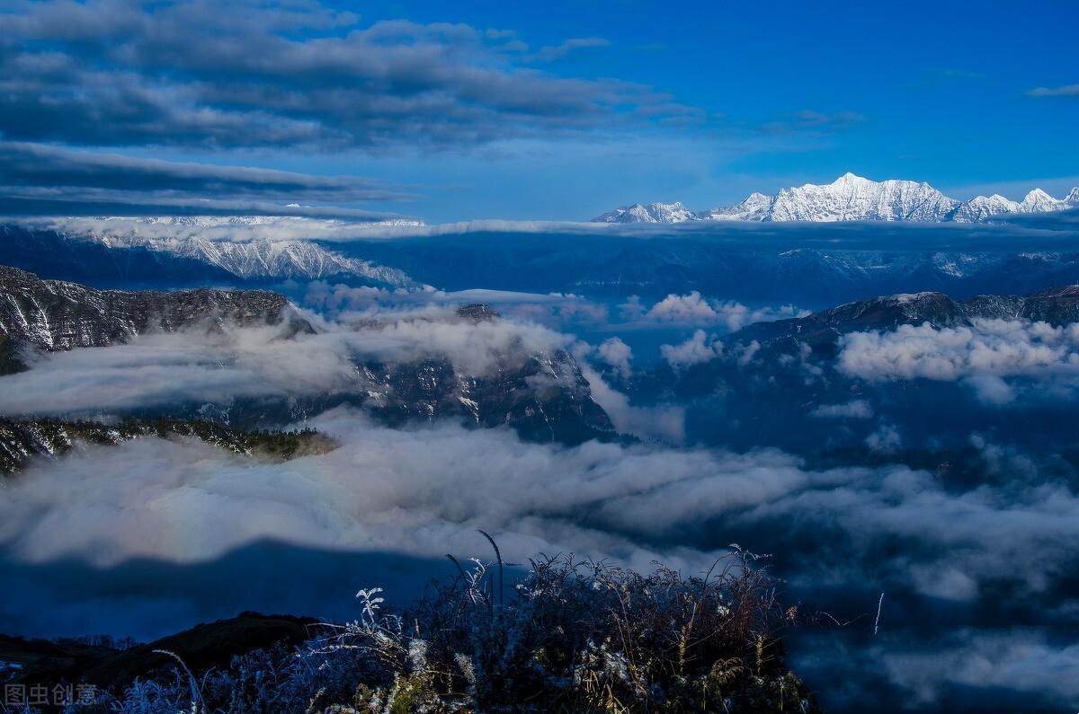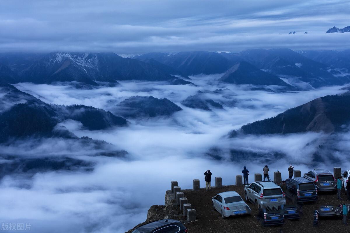 牛背山的360度雲海、雲瀑奇觀,隔着雲海眺望遠處的貢嘎雪山。