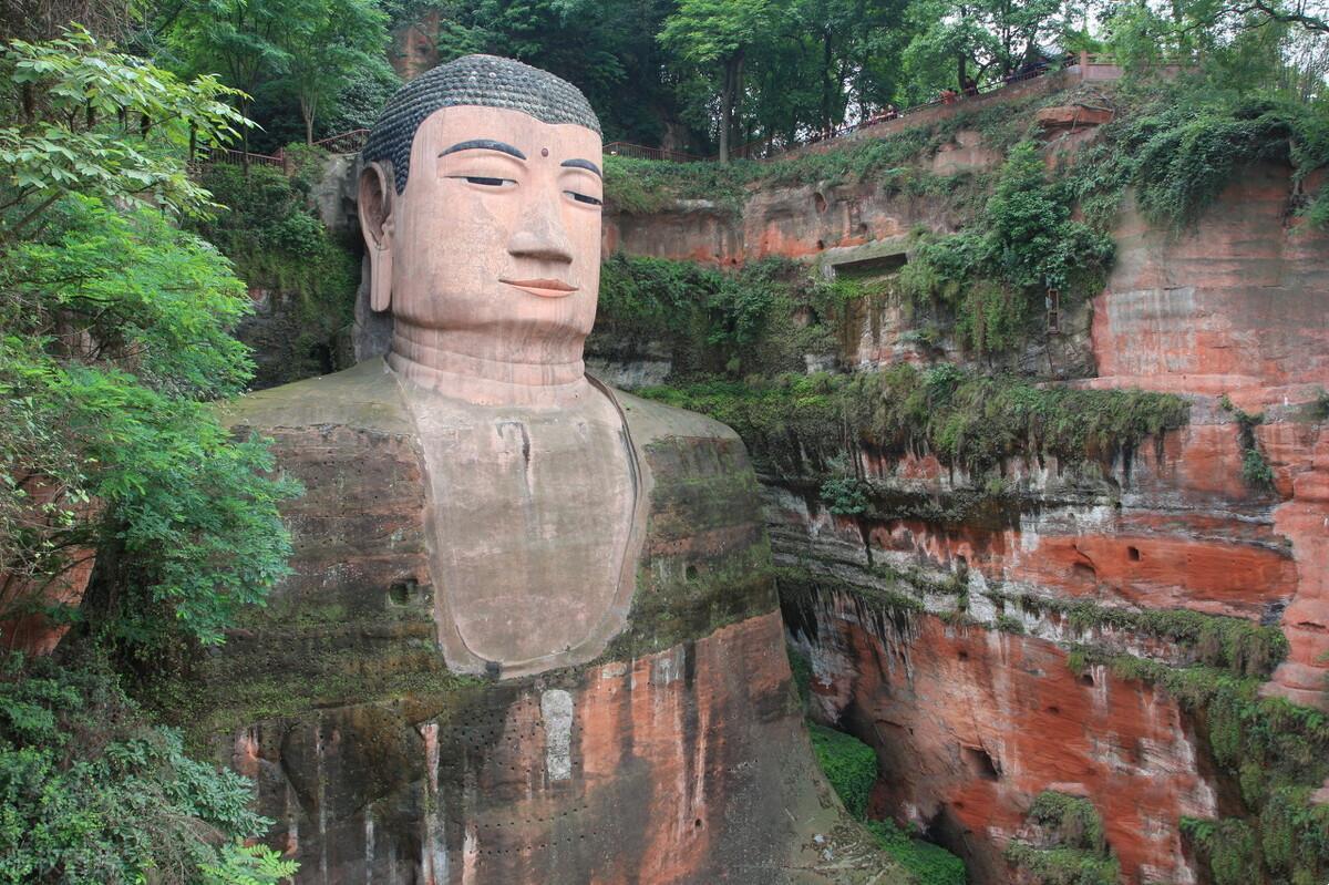 高71米的樂山大佛,開鑿於唐朝,據說當年是百姓爲了鎮江水而建,說來也怪,自打建成以後,再沒發生過沉船事件。