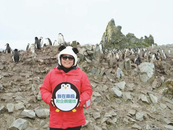 赴南極旅遊的中國遊客與企鵝合影 6人遊定製旅行 供圖
