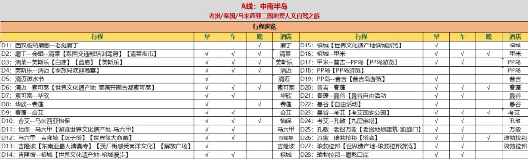 路線二:老撾+泰國+馬來西亞28日【中南半島】
