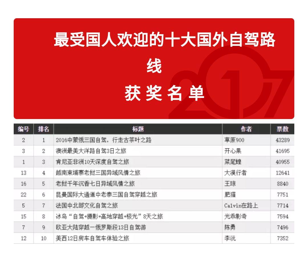 (由於2023年境外旅遊業務恢復較慢,故2023年度“深受歡迎的國外自駕路線”暫停評選)