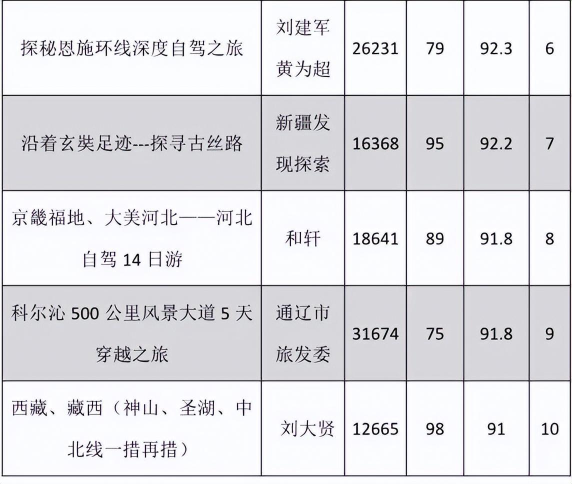 4、中國深受歡迎的十大自駕路線優秀獎七名(第四至第十名);