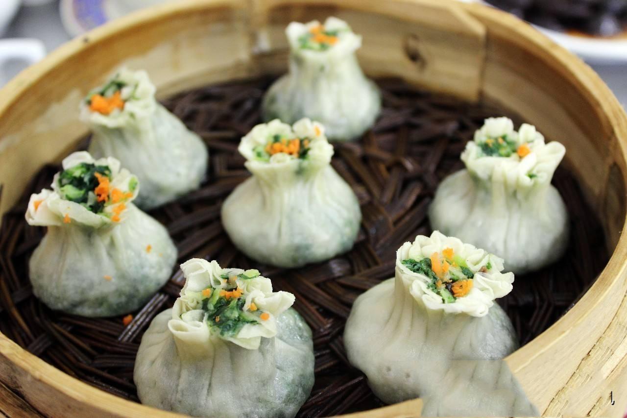 翡翠燒麥,揚州經典小喫,青菜剁碎加精鹽、白糖、熟豬油拌勻成餡,其色澤翡綠,皮薄餡豐,甜潤清香,十分美味。