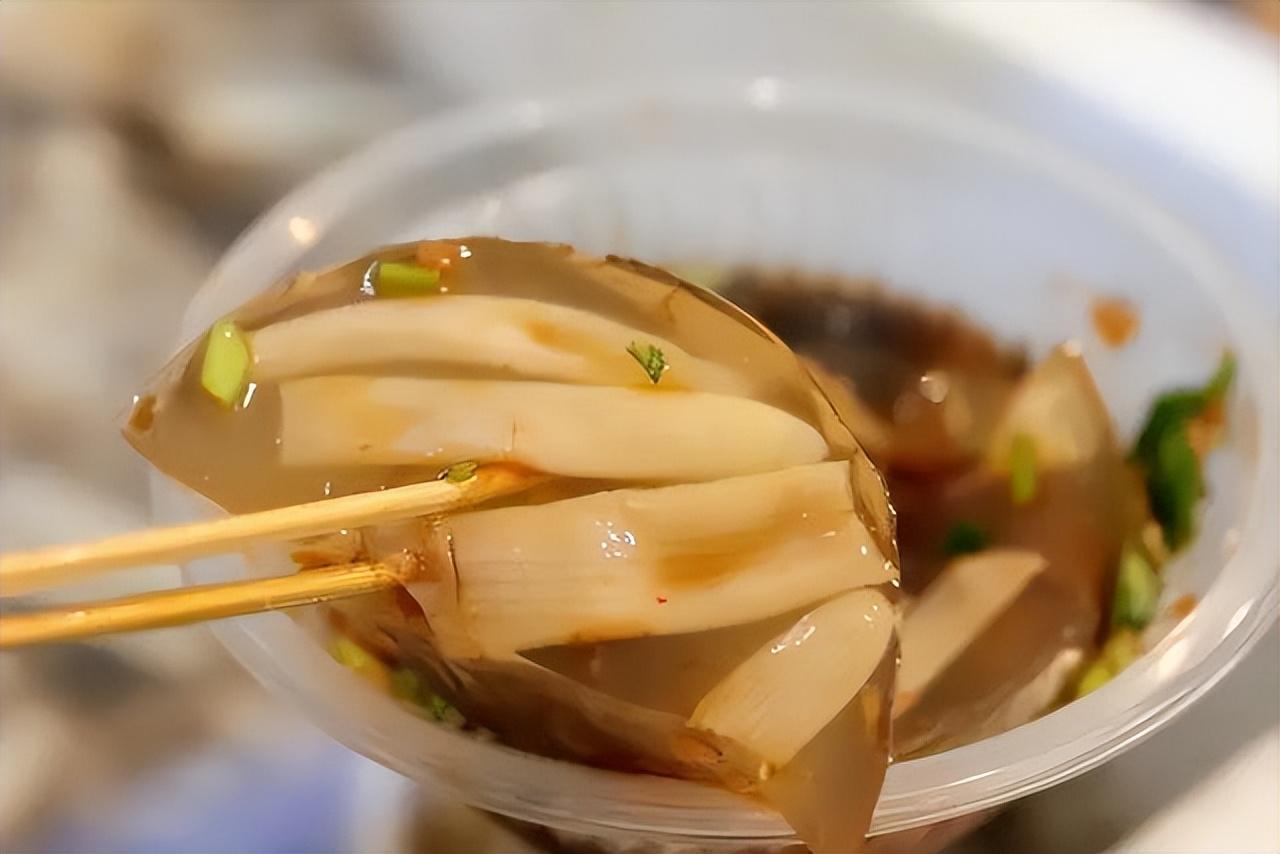 土筍凍,土筍別名海泥蟲,屬星蟲動物門,做的土筍凍是一種特色傳統風味小喫,味美甘鮮,清香軟嫩,滑溜爽口,是福建人難捨的美味。