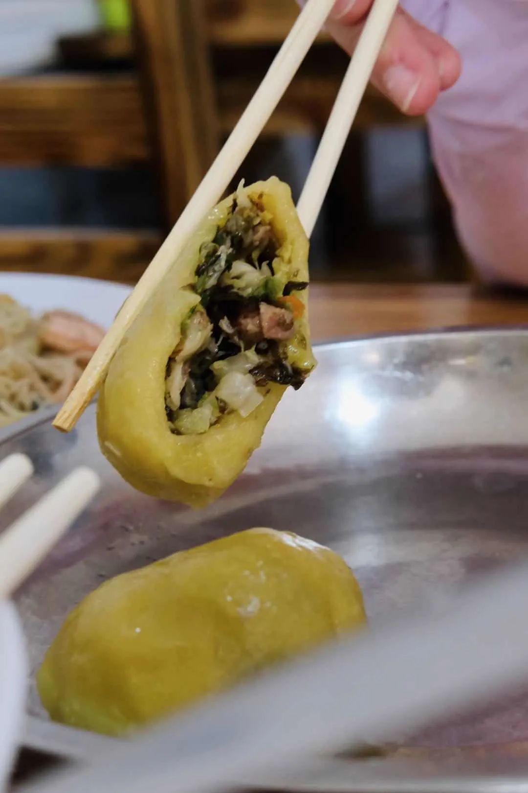 衢州烤餅分爲小烤餅和大烤餅,餡主要有蔥花、豬肉、梅乾菜,最好喫的還是梅乾菜餡的。