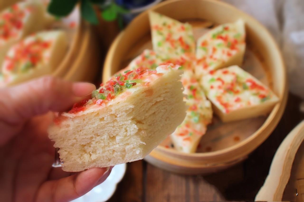 千層油糕,揚州著名傳統糕點,糕分64層,糖油相間,綿軟甜嫩,與翡翠燒麥並稱爲揚州糕點雙絕。