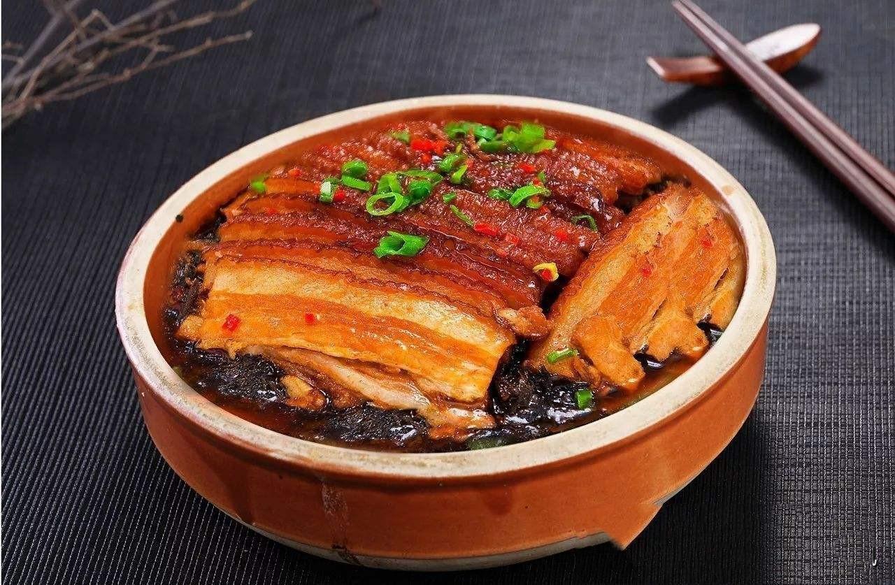 千張扣肉,肉片薄如紙,形如梭,片數多,故名千張扣肉,其肉香而不膩,入口即化。