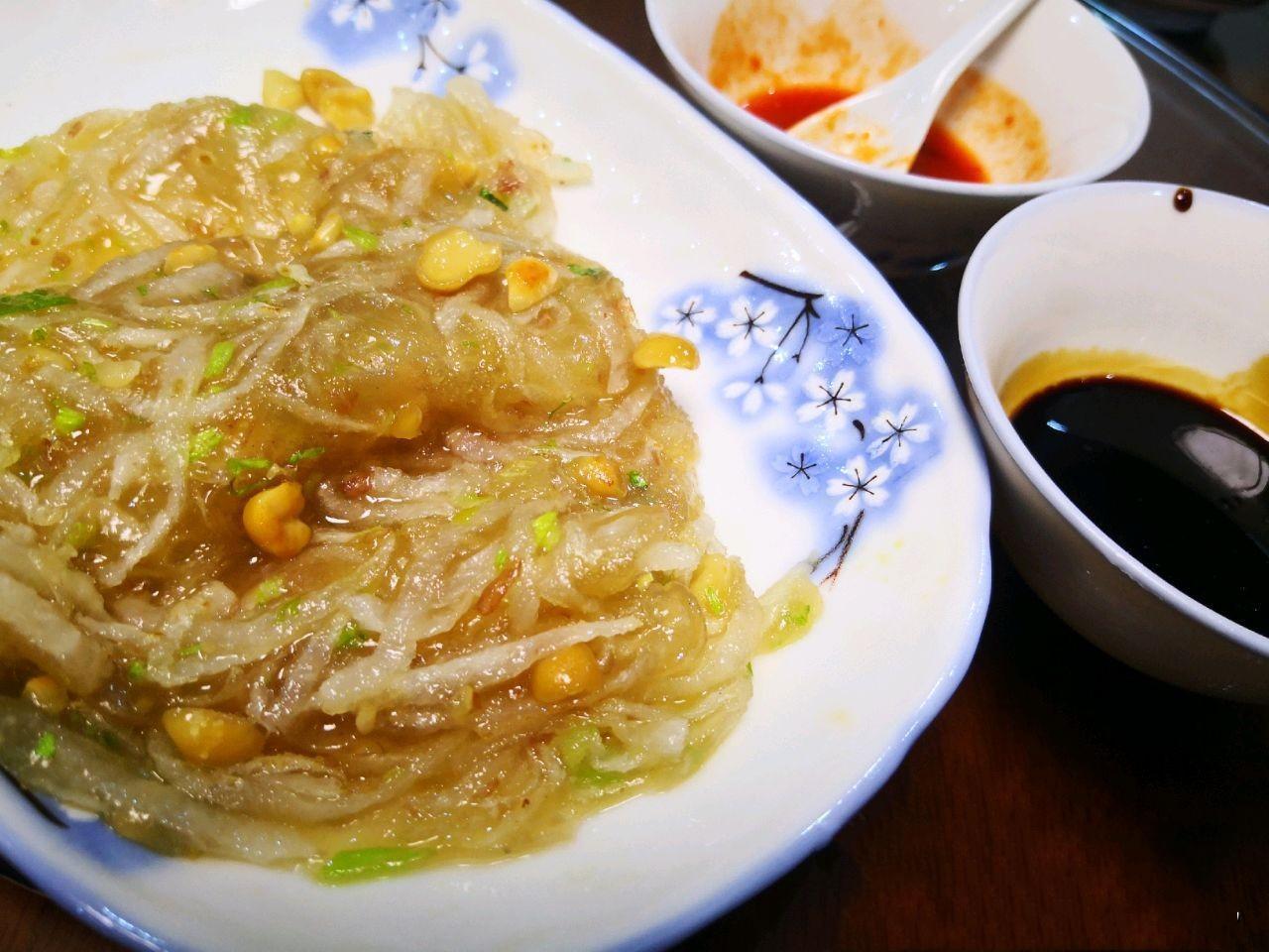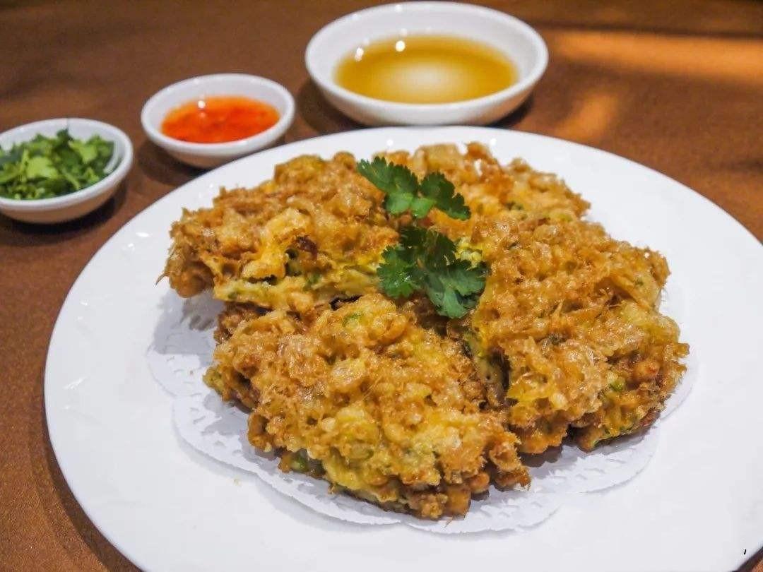 蚵仔煎,以海蠣肉爲原料,配上番薯粉、雞蛋、蒜苗,伴着蒜蓉醬、菜頭酸,喫起來口感酥脆,入口回香。