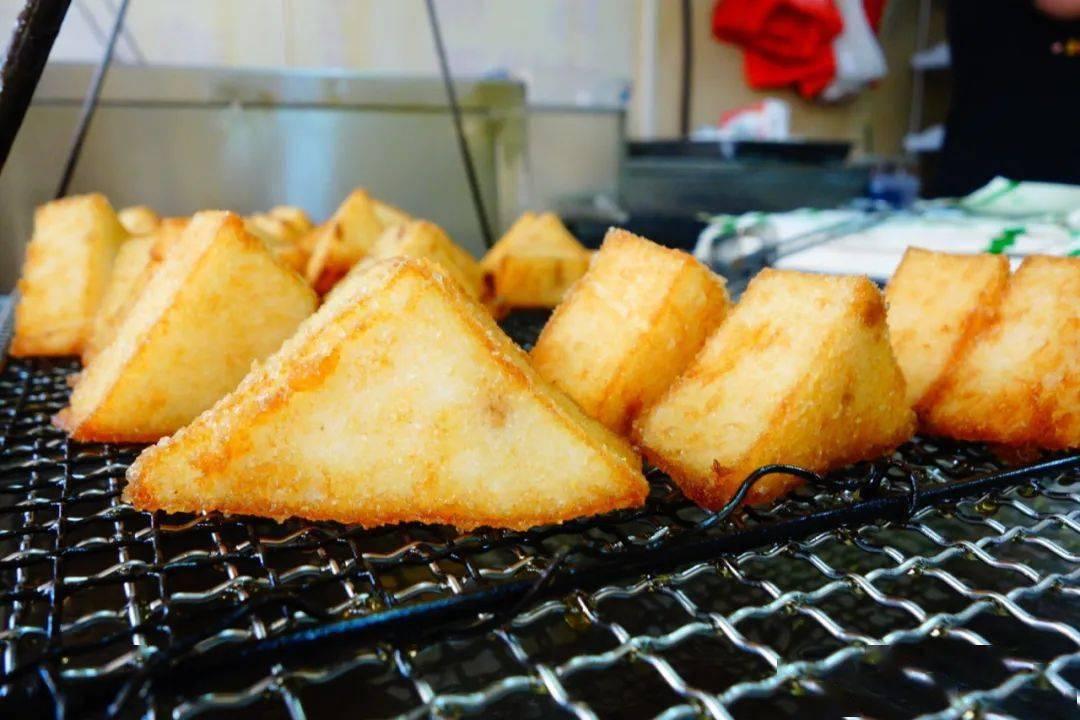 三角粿,漳州纔有的特色小喫,金黃酥脆,軟嫩綿密,沾上特製醬料,趁熱咬上一口,香甜酸辣鹹交融,真是妙不可言。