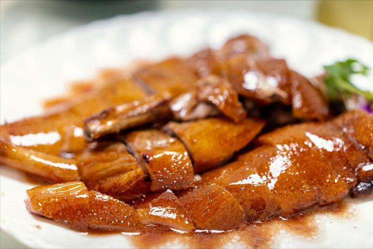 脆皮燒鵝,烤制後的鵝肉脆皮香脆可口,以深井燒鵝的味道最好。