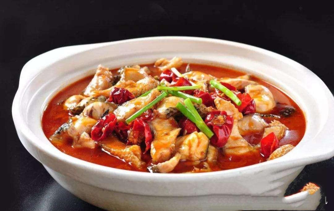 水煮財魚,做法是財魚切片配上白豆腐,用本地農家特製的豆瓣醬微火燒製,其味道鮮美醇厚不油膩。