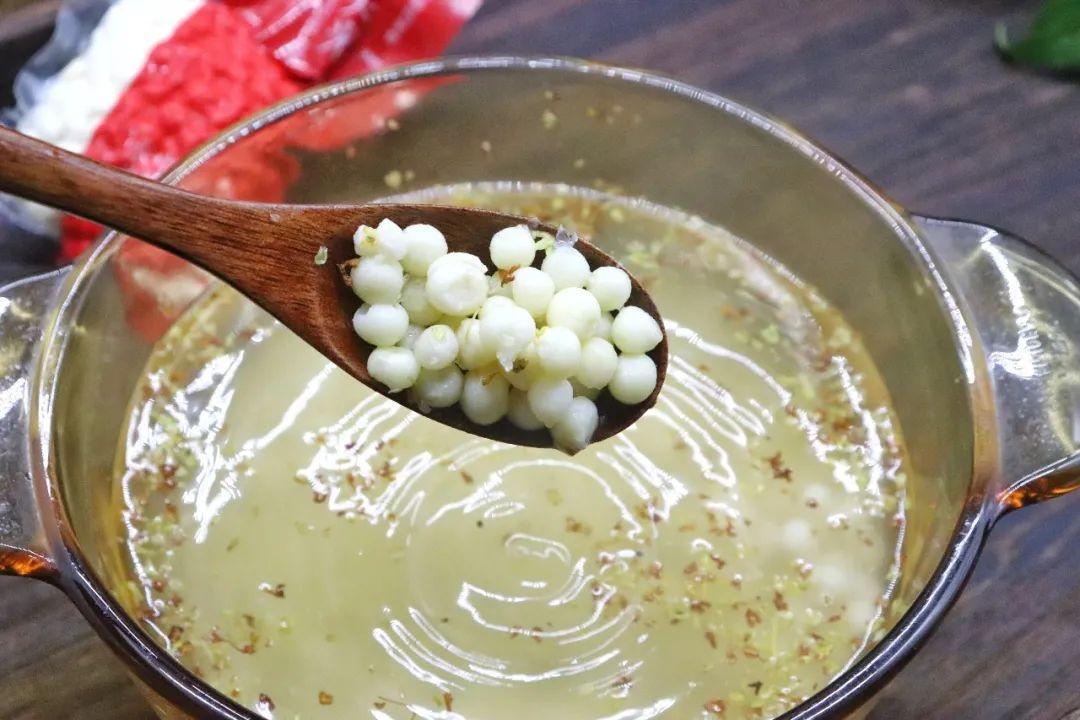 雞頭米羹,雞頭米被蘇州視爲"水中人蔘",最大衆的喫法就是雞頭米羹,清淡的湯羹散發出蓮塘裏纔會有的水氣和清香。