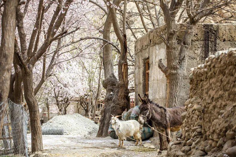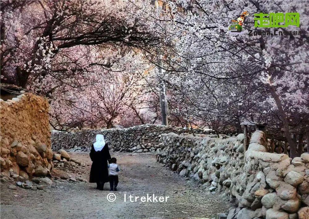 百年野杏樹遮天蔽日,雲霞般花朵傲然怒放,塔吉克族婦女在杏花樹下悠閒地做着繡品、孩子在嬉戲......宛如世外桃源。