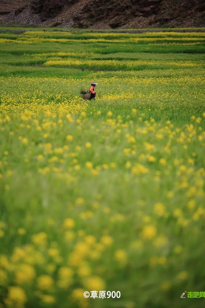 層層疊疊的梯田,像是花海上浮起的漣漪,忽而一陣風飄來,漫山的油菜花隨風而動,讓人迷了眼。