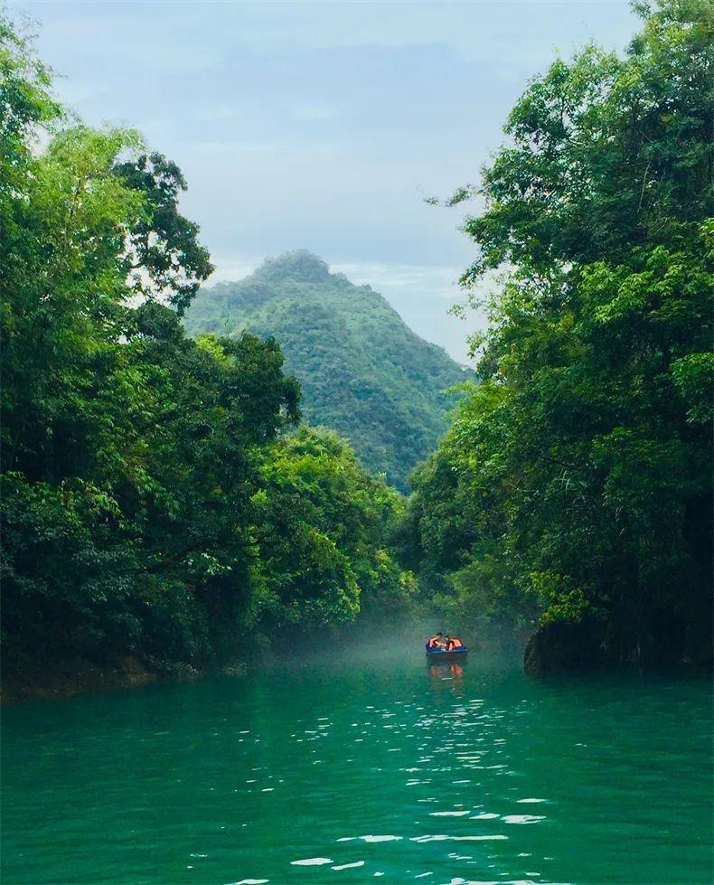 沒有夏季的酷暑,春天的荔波的水很特別,碧綠如翡翠,秀美幽靜的森林裏,讓人忍不住閉着眼、深呼吸,享受這一絲平靜。